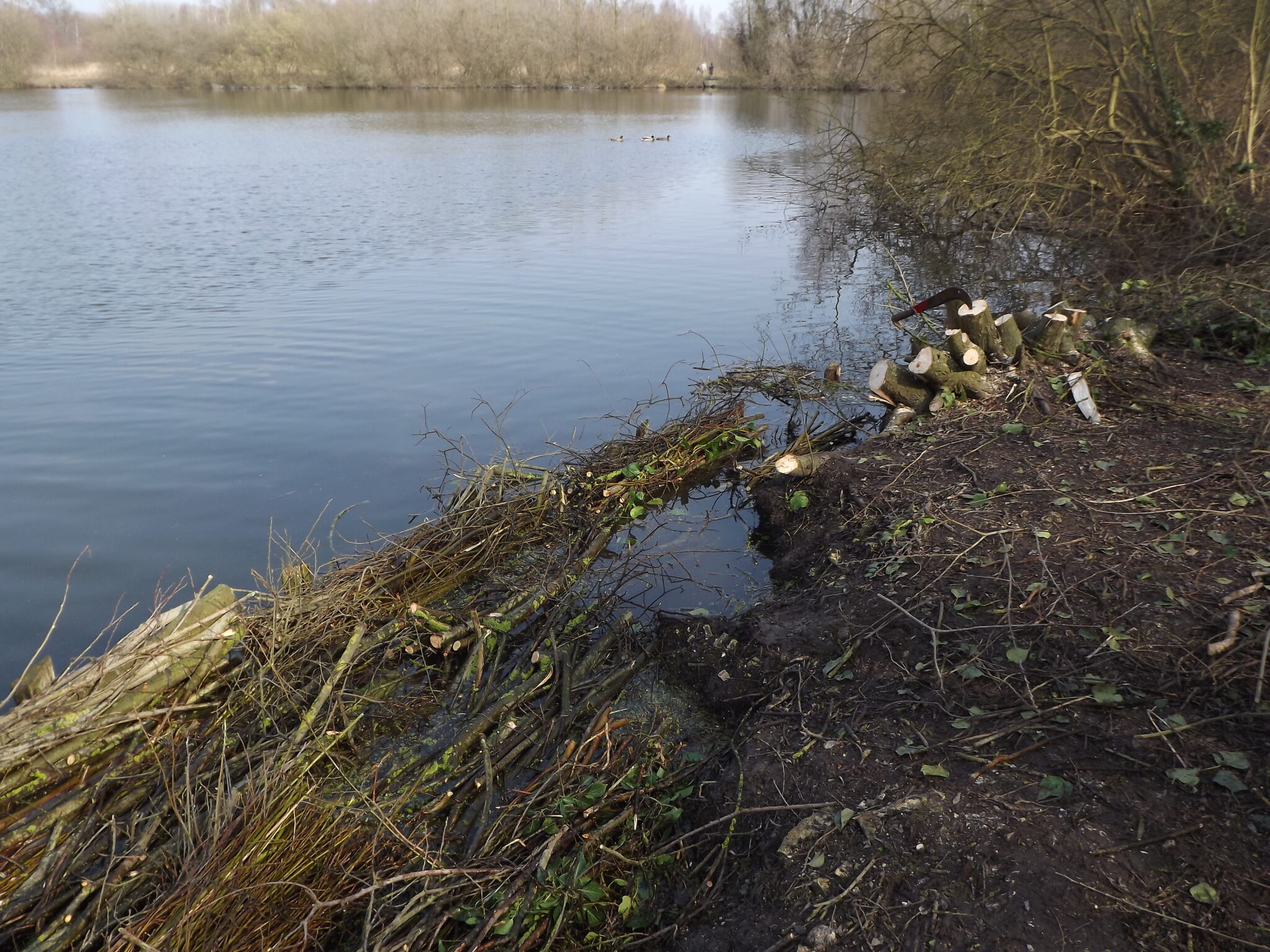 Là bas, nous devions renforcer les rives du marais qui souffrent de l’érosion. Pour cela, nous avons donc fait plusieurs petits groupes et comme des petites fourmis chacune des personnes était un maillon de la chaîne. Le premier groupe a coupé les rejets de saule et les a transporté (attention sol glissant!) jusqu’au second groupe qui les a assemblés avec du fil de fer afin de confectionner des ballots pour ensuite laisser le soin au dernier groupe de les disposer dans le marais (avec leur belles combinaisons!).